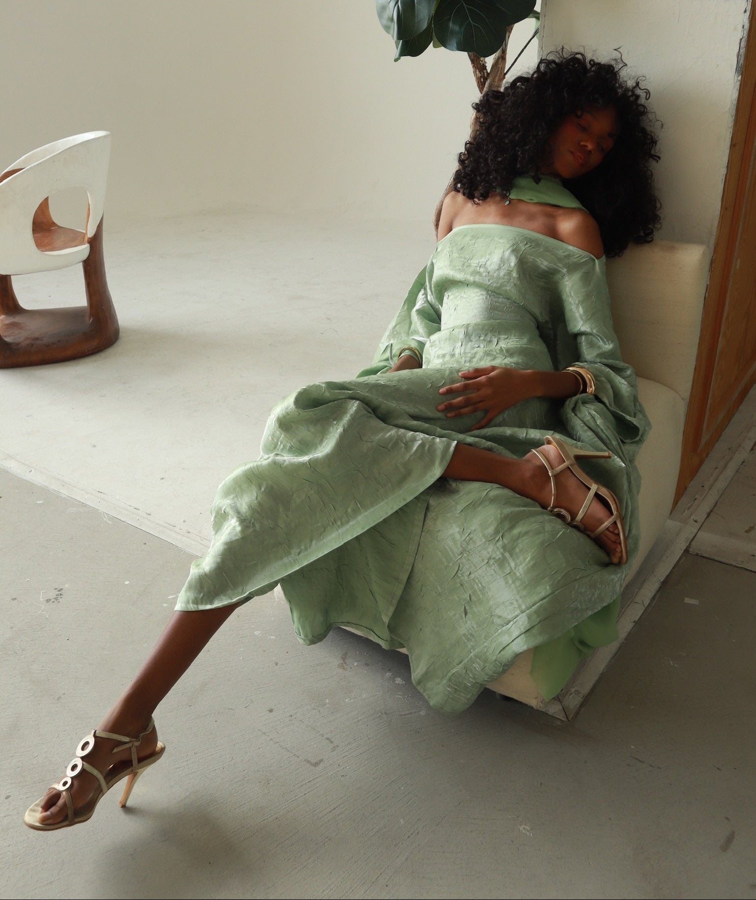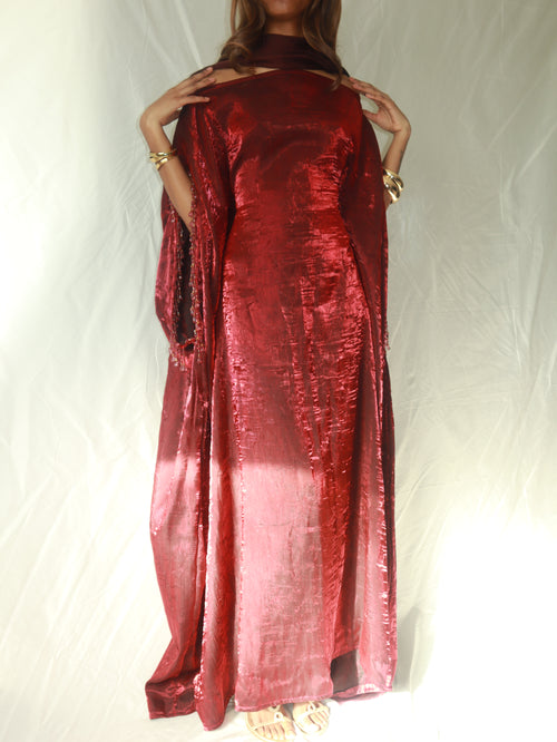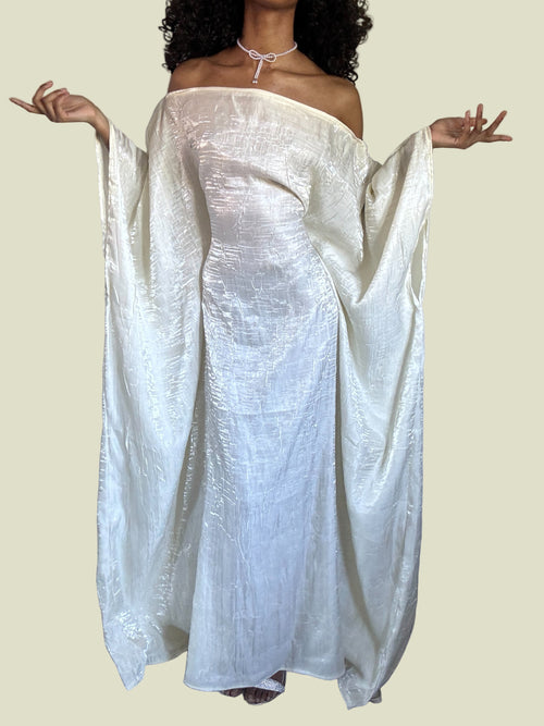The "Almyra Dress" made with iridescent crush shimmer fabric. This elegant dress is perfect for weddings, special events, or if you just want to feel like a goddess walking on earth.